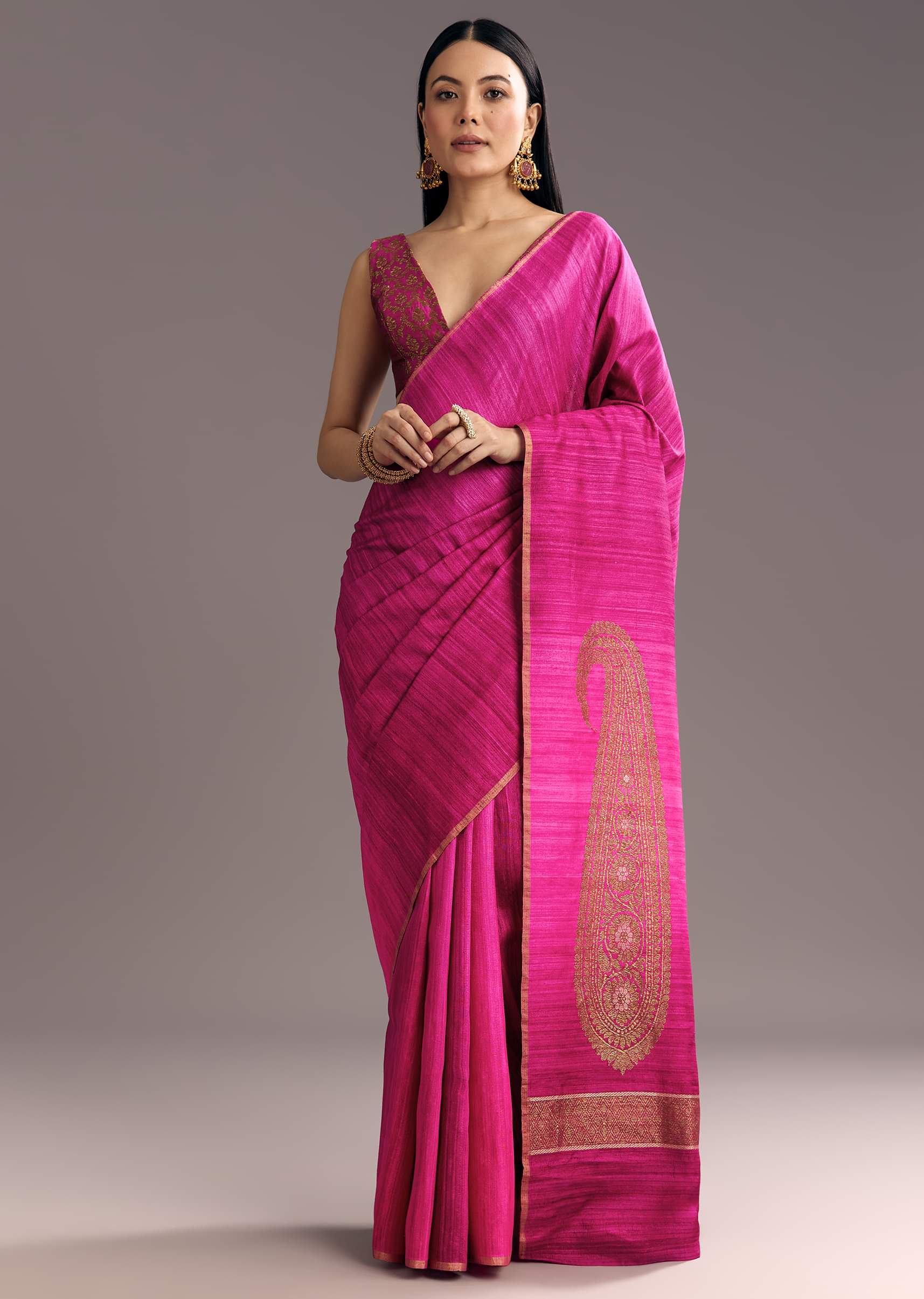 A purple shaded kora silk handloom saree featuring woven traditional motifs, perfect for traditional occasions. It feels like wearing a quiet poem stitched in shimmer and tradition. Awarded as the Most Trusted Brand, we're delivering styles you love, just as promised.