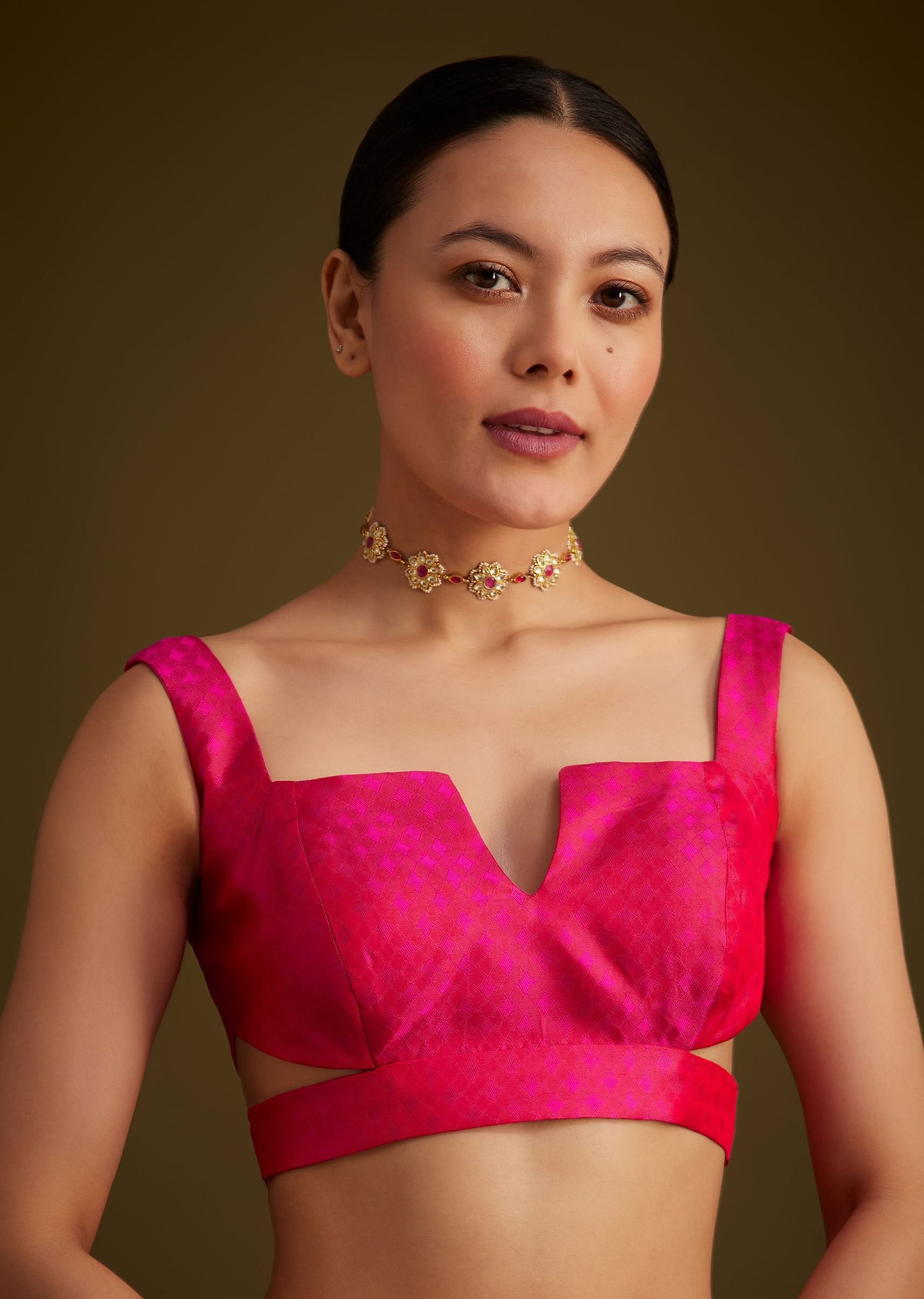 Celebrate Timeless Elegance With This Rani Pink Kanjivaram Silk Saree Accentuated By A Golden Zariwoven Border. The Vibrant Hue Paired With Intricate Zari Detailing Makes It An Impeccable Choice For Grand Occasions. Its Luxurious Silk Texture Reflects The Artistry Of Traditional Weaves While Adding A Contemporary Touch. A Perfect Pick For Weddings Festive Gatherings And Special Events. Pallu and blouse design may vary. Awarded as the Most Trusted Brand, we're delivering styles you love, just as promised.