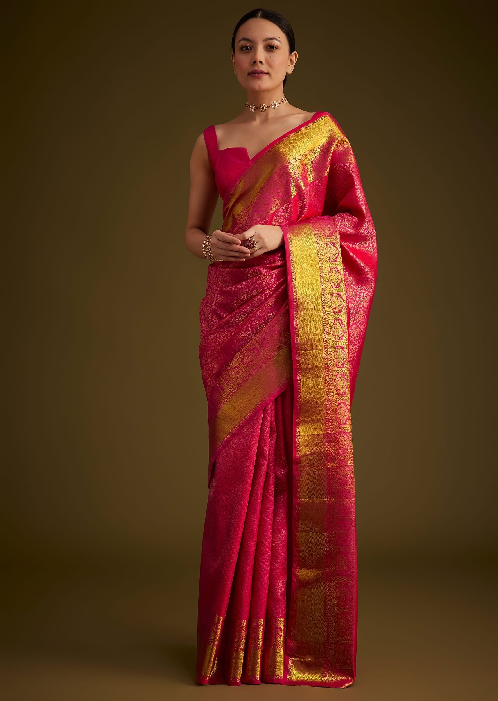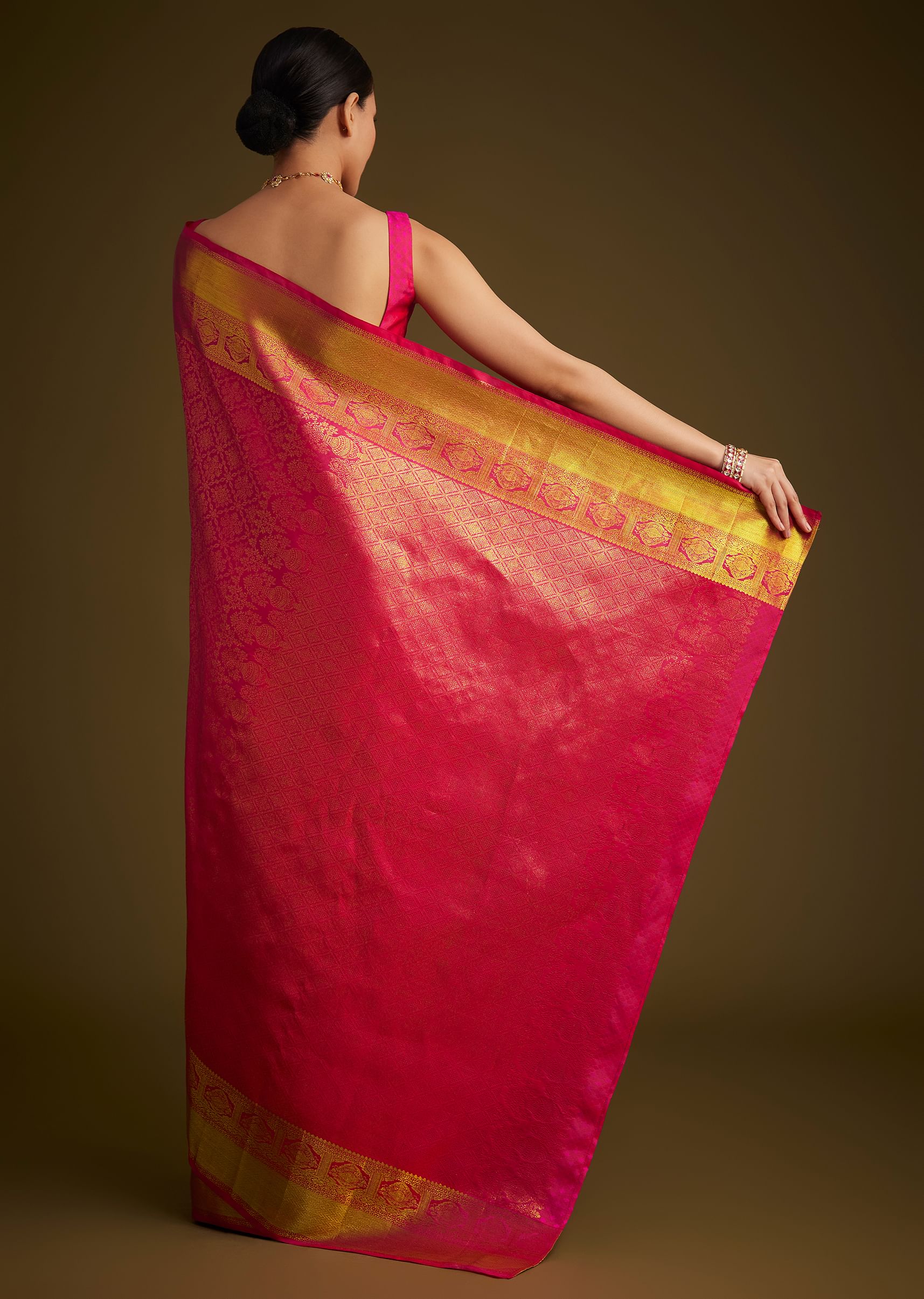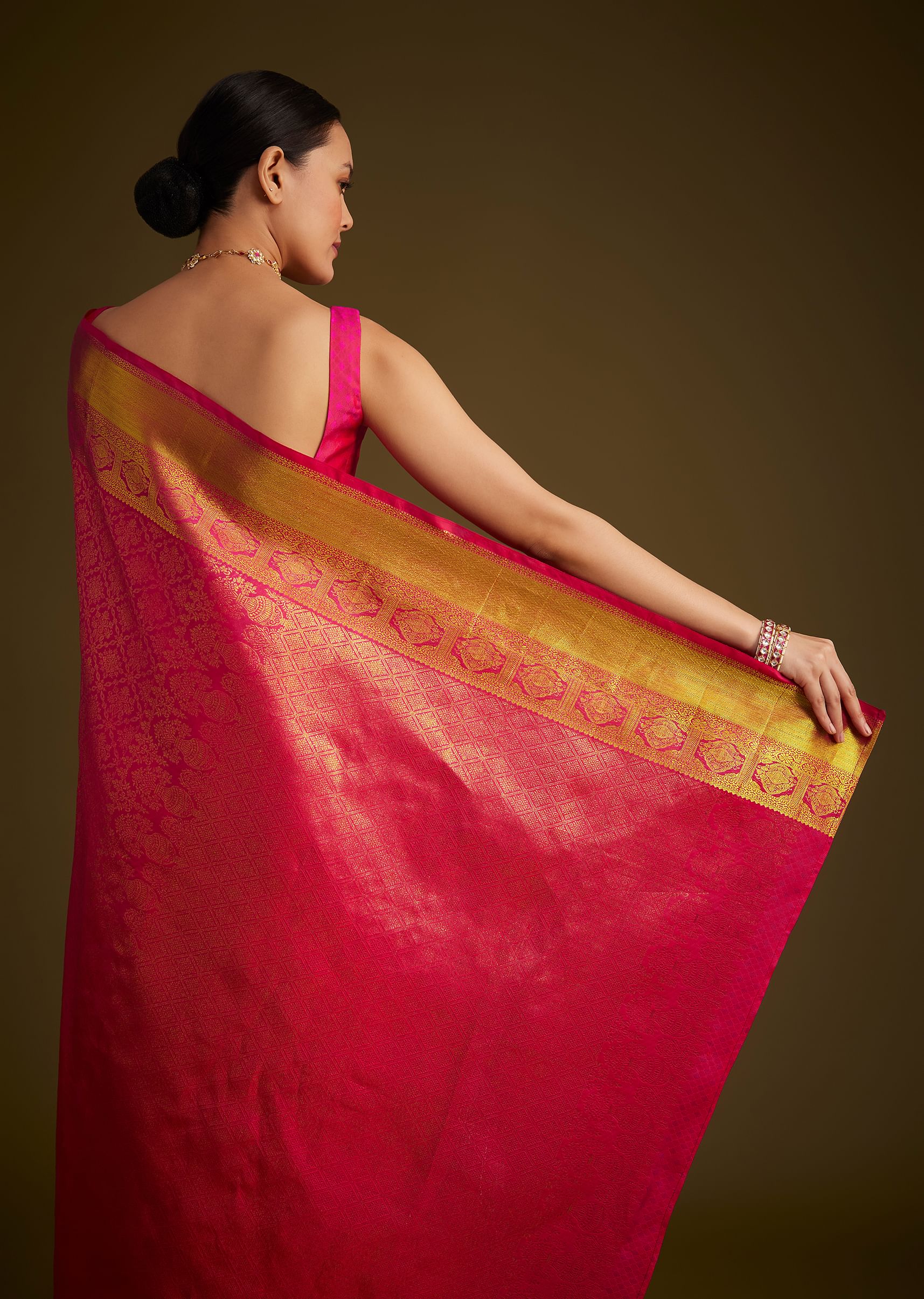 Rani Pink Kanjivaram Silk Saree With Golden Zari Border