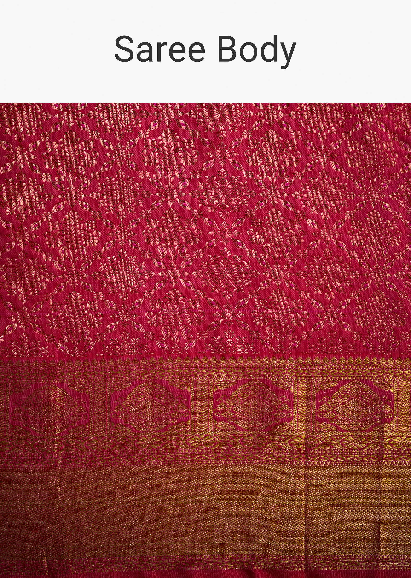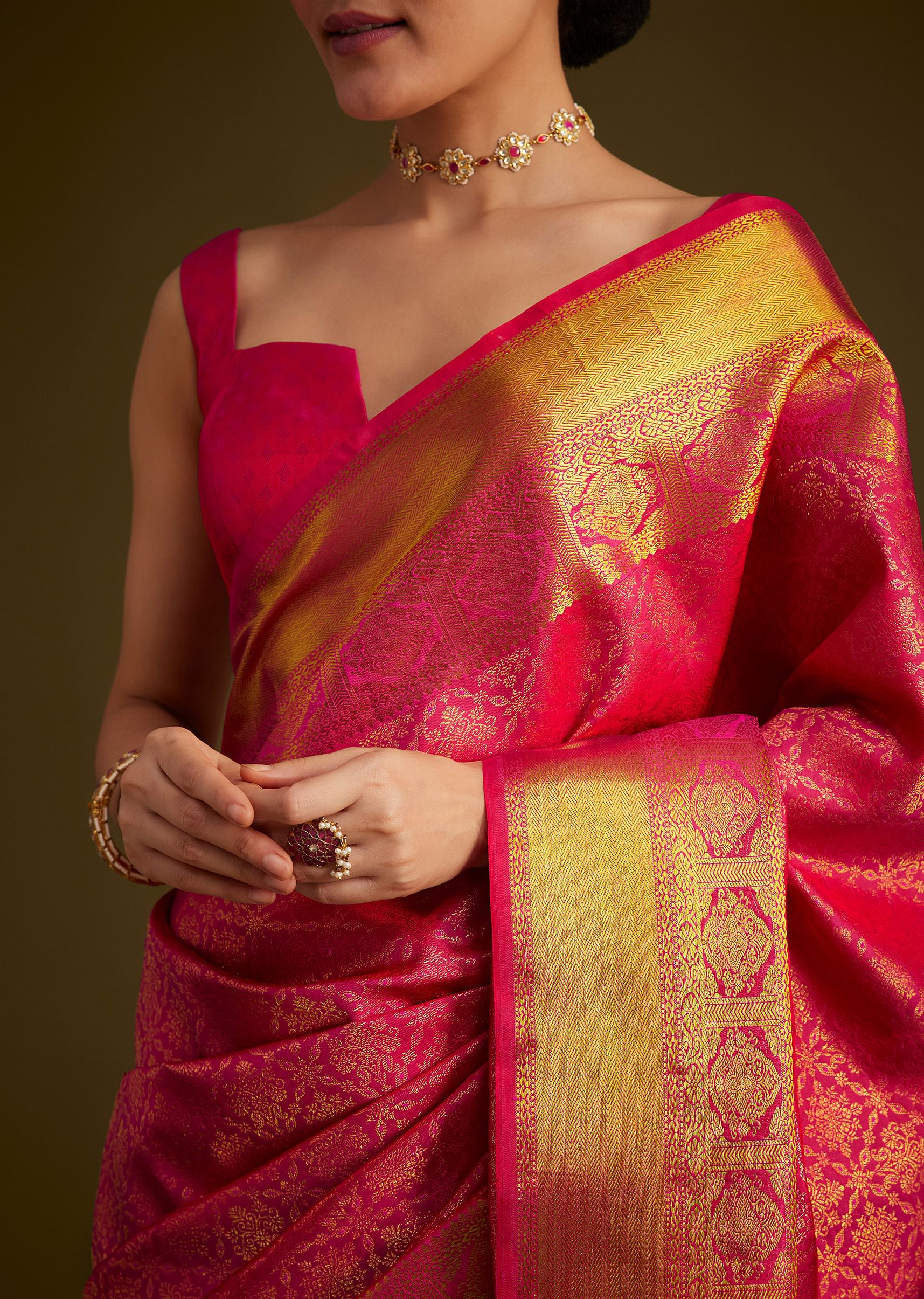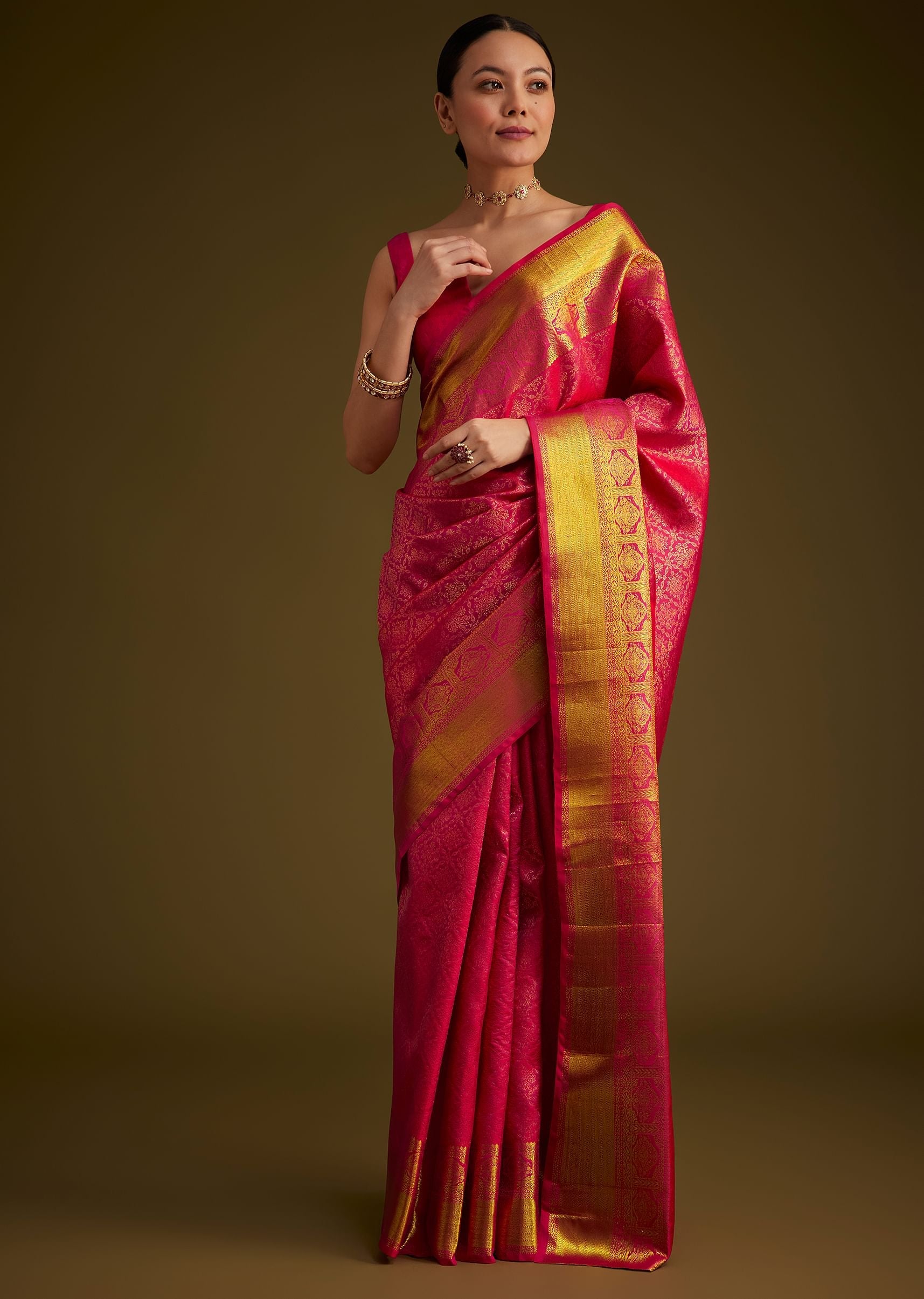 Rani Pink Kanjivaram Silk Saree With Golden Zari Border