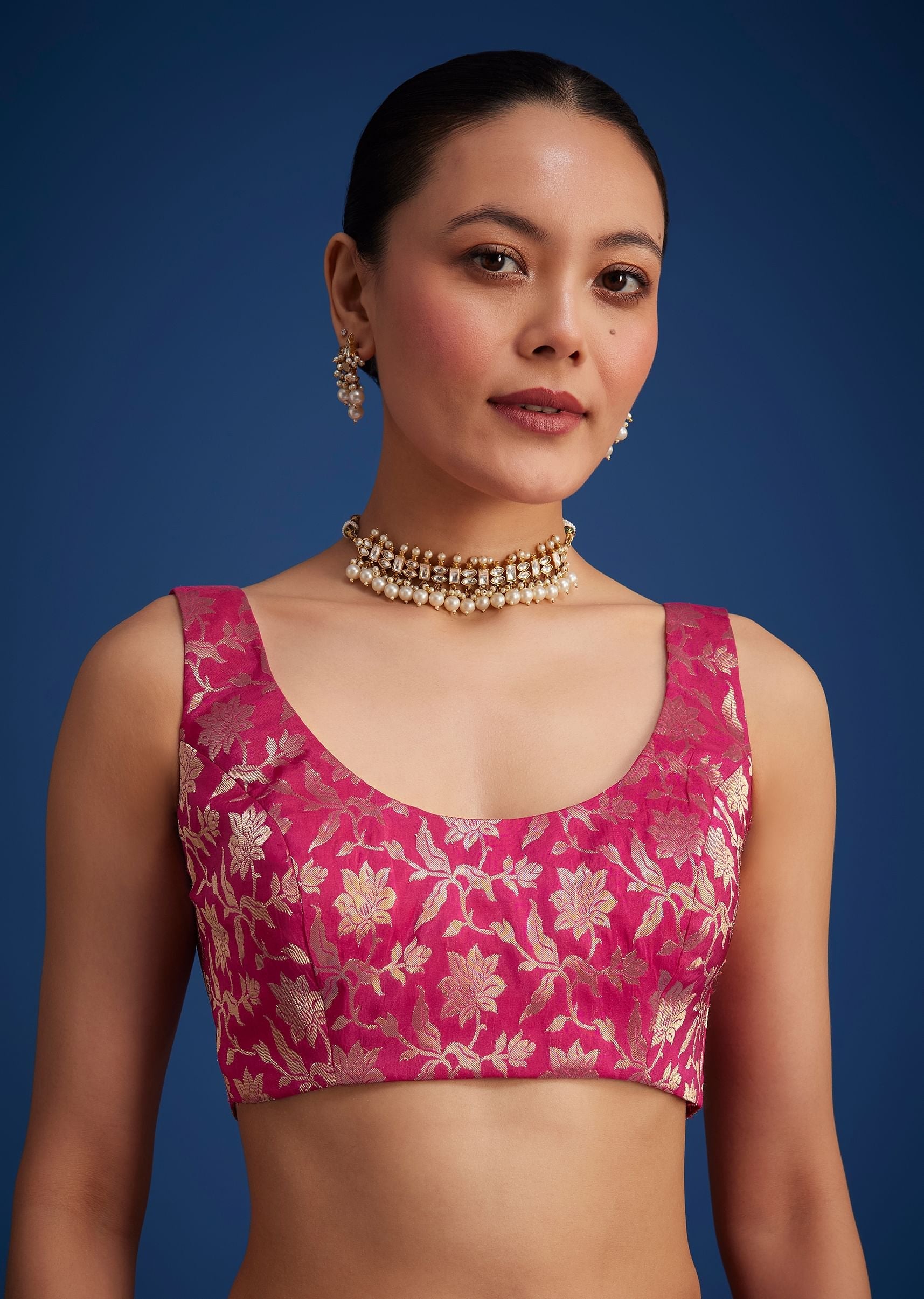 Celebrate elegance with this rani pink tissue silk saree, adorned with intricate zari border and butti work. The glossy texture and delicate craftsmanship highlight the beauty of traditional design while offering a modern appeal. Perfect for wedding functions and grand festivities, this saree is a statement piece that brings charm and sophistication to your wardrobe. Drape yourself in this timeless masterpiece to shine on your special occasions.Awarded as the Most Trusted Brand, we're delivering styles you love, just as promised.