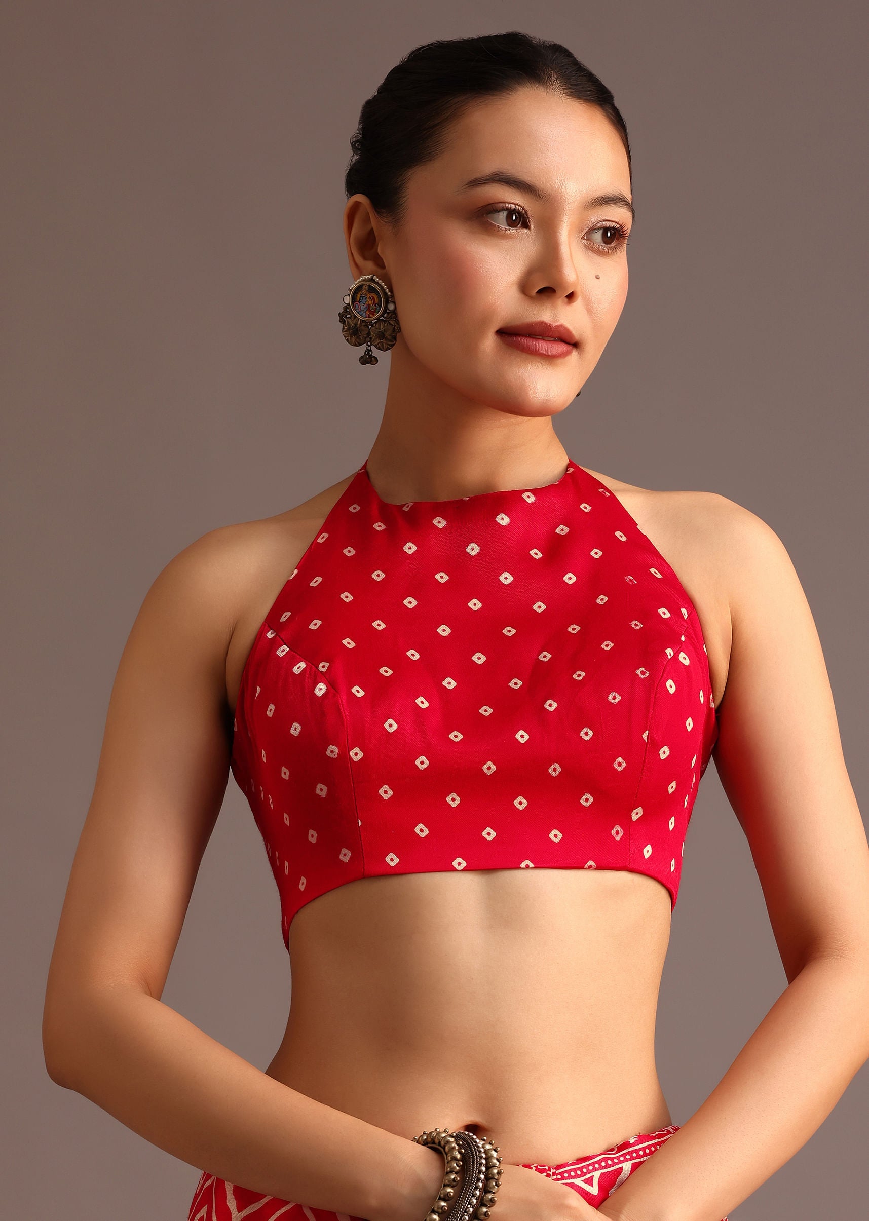 Pair with antique-finish jhumkas, a sleek bun and gold bangles; carry a potli to echo the gota.
