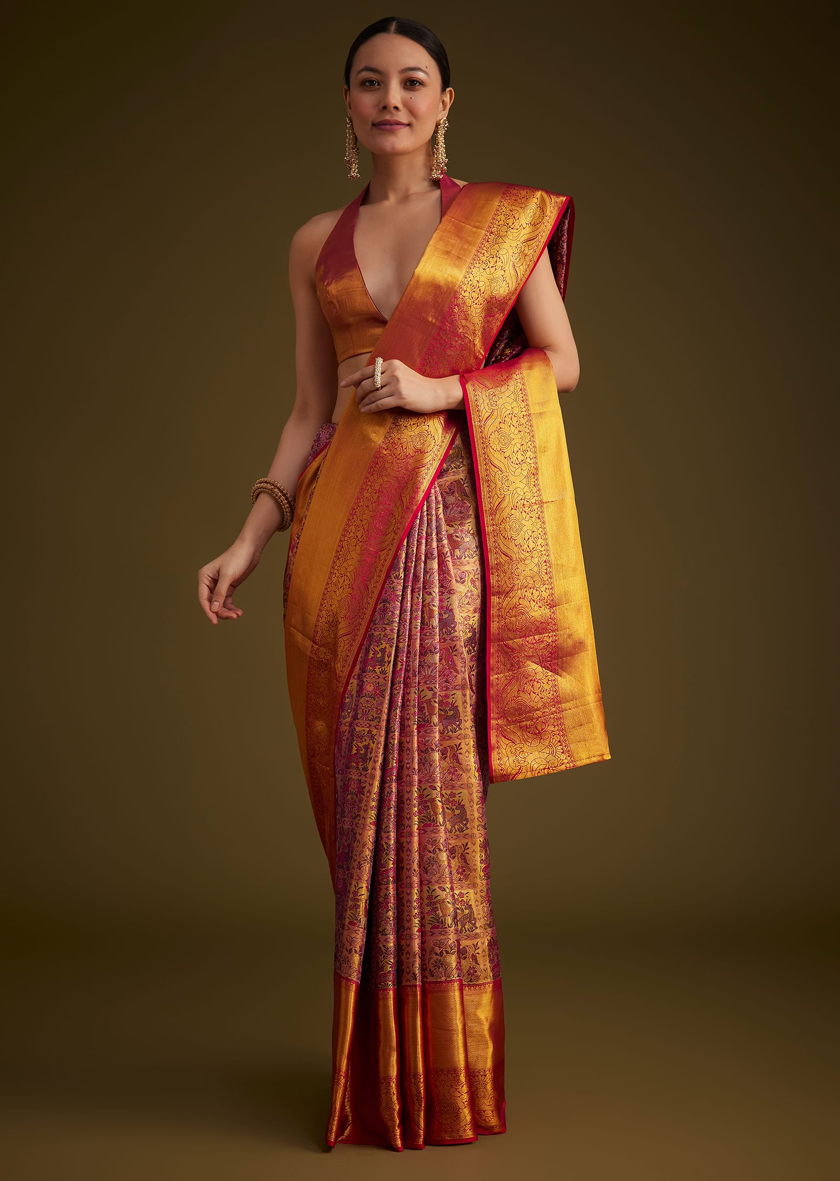 Red Kanjivaram Silk Saree With Golden Zari Border