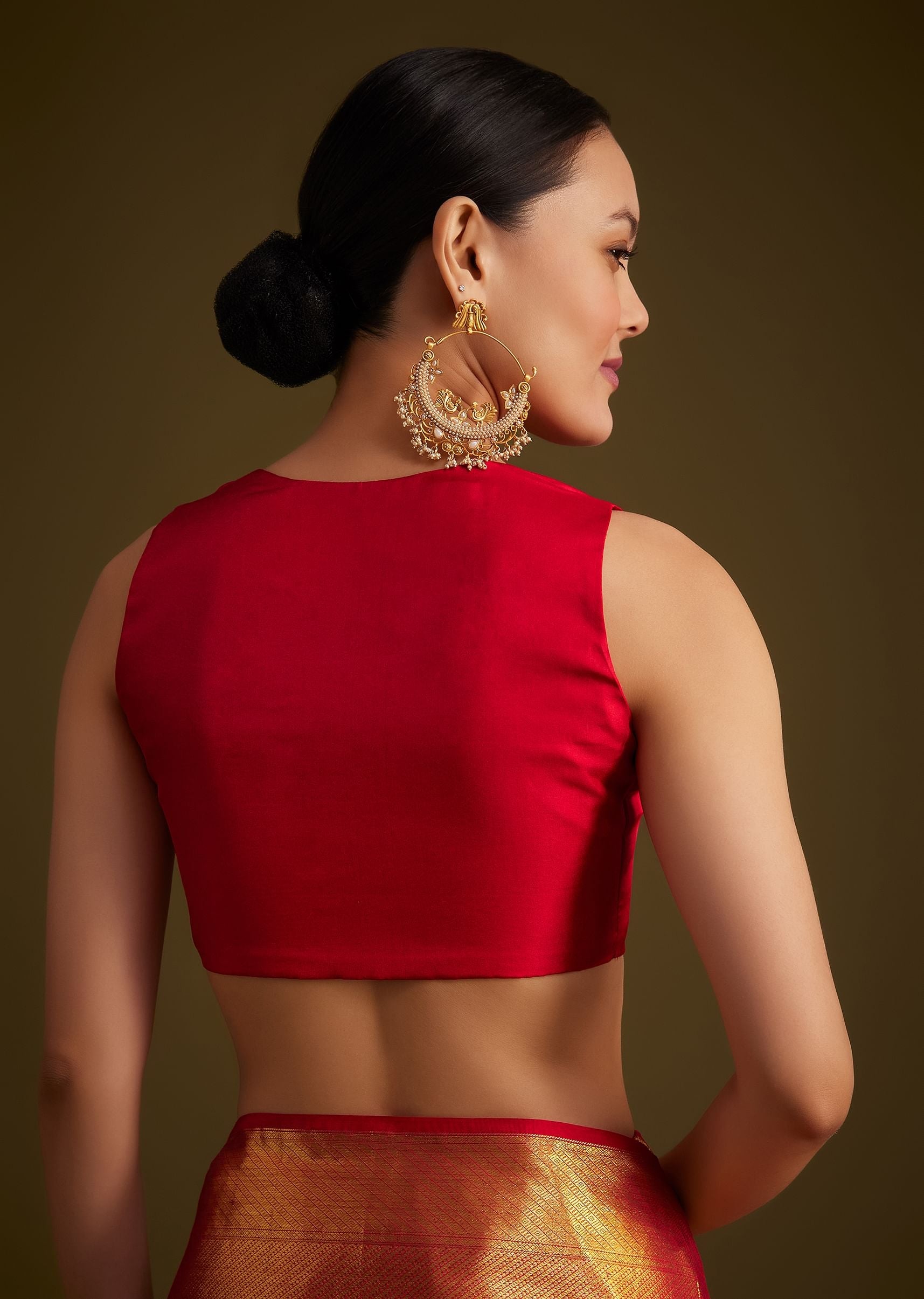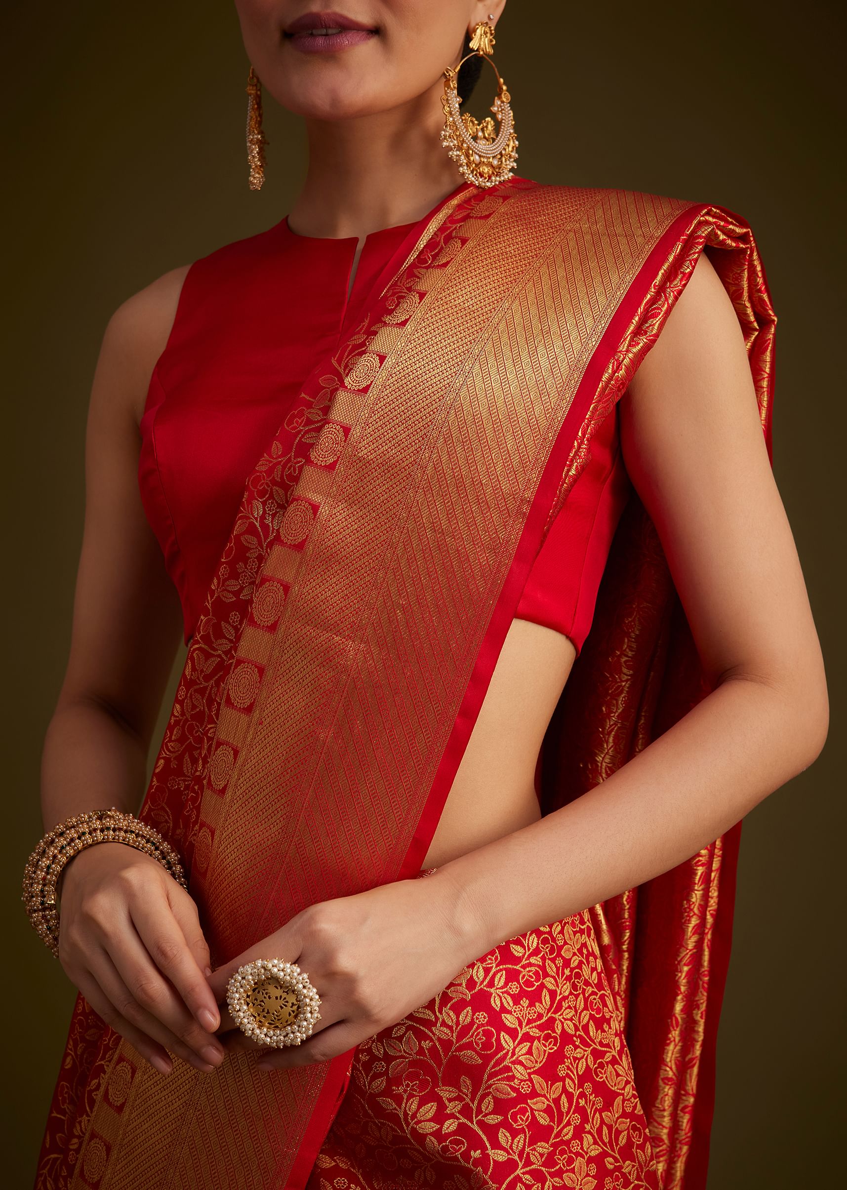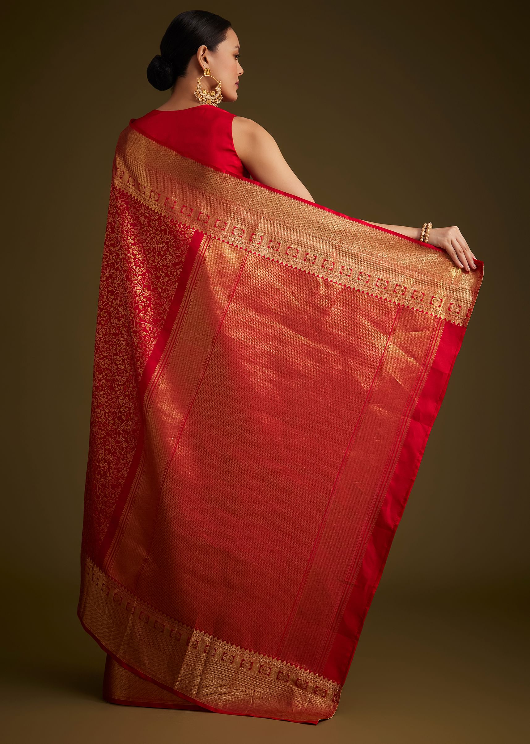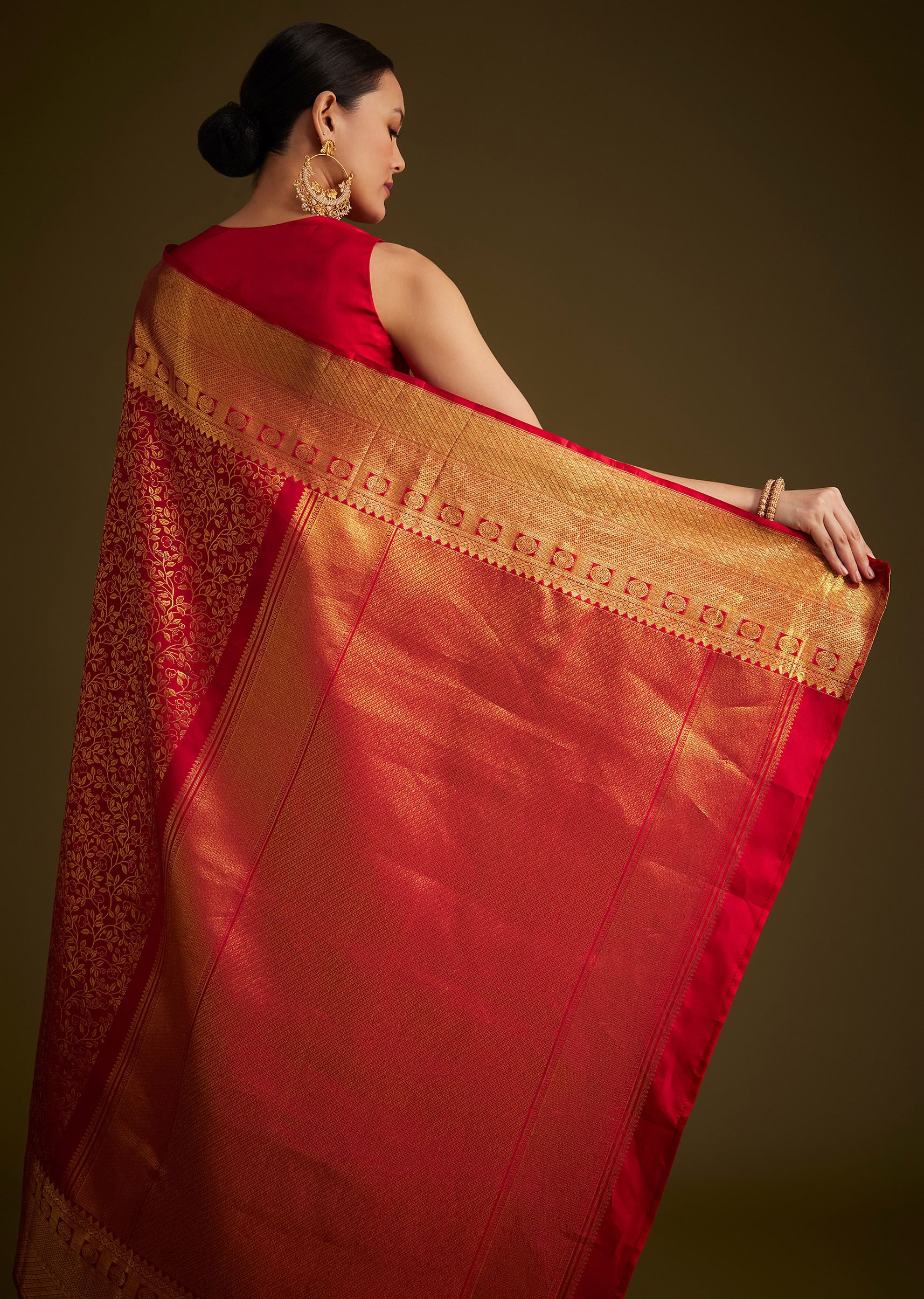 Red Kanjivaram Silk Saree With Golden Zari Woven Border