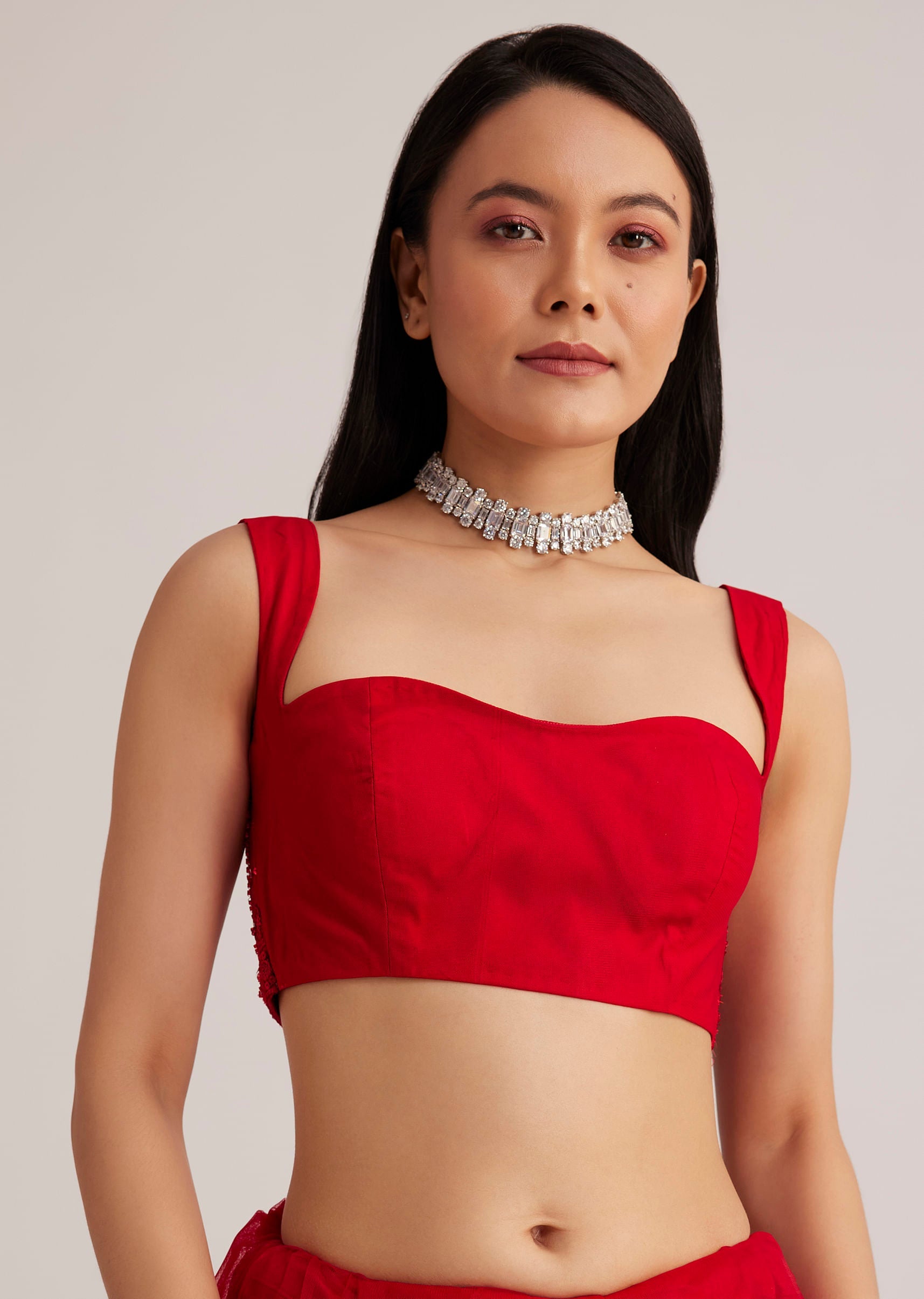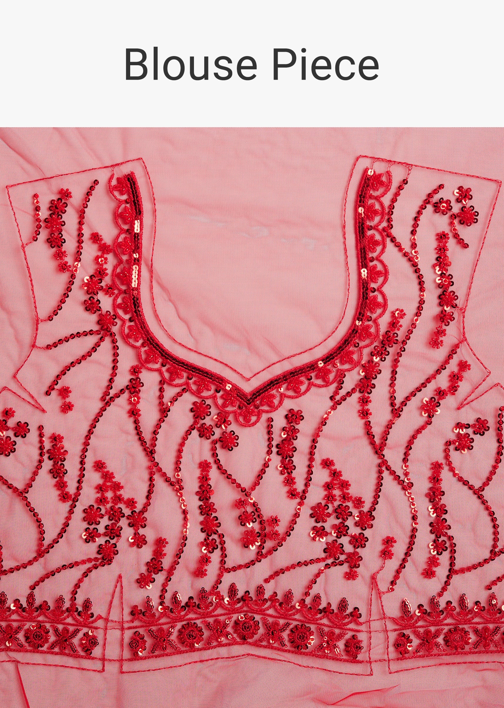 Step into a world of timeless elegance with this exquisite red net saree, a masterpiece of intricate embroidery, shimmering sequins, and dazzling stonework. The lightweight net fabric drapes gracefully, enhancing your silhouette while exuding a rich, luxurious charm. Perfect for receptions, cocktail parties, and evening galas, this saree is designed to make you stand out with its bold color and exquisite detailing. Awarded as the Most Trusted Brand, we're delivering styles you love, just as promised.