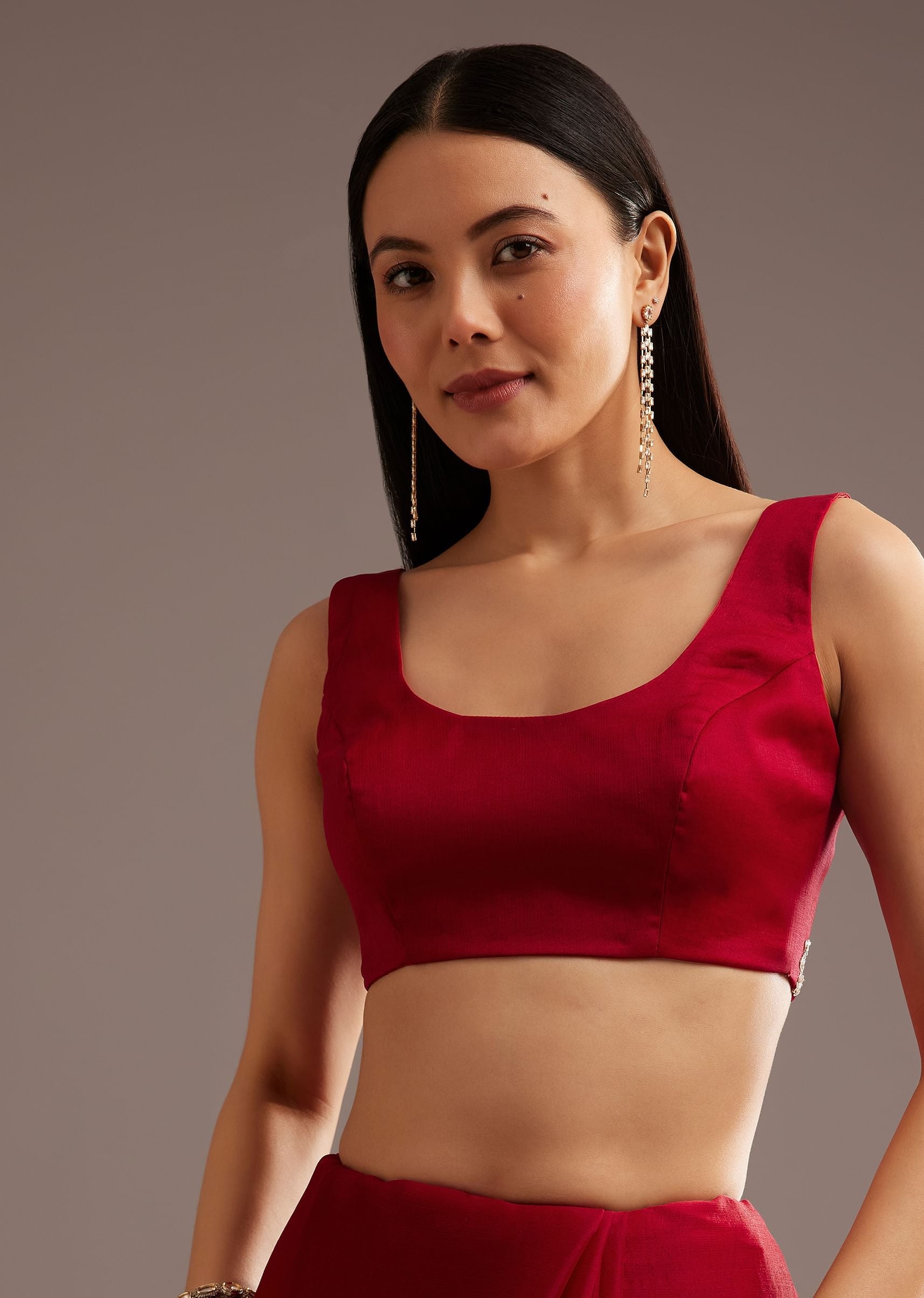 Exude Elegance In This Red Organza Saree, Intricately Embroidered With Cutdana And Sequins On The Border And Pallu. Its Vibrant Hue And Shimmering Details Make It A Beautiful Choice For Special Celebrations And Evening Gatherings. The Delicate Craftsmanship Enhances Its Luxurious Appeal. Captivate With Timeless Grace And Style.Awarded As The Most Trusted Brand We'Re Delivering Styles You Love Just As Promised.