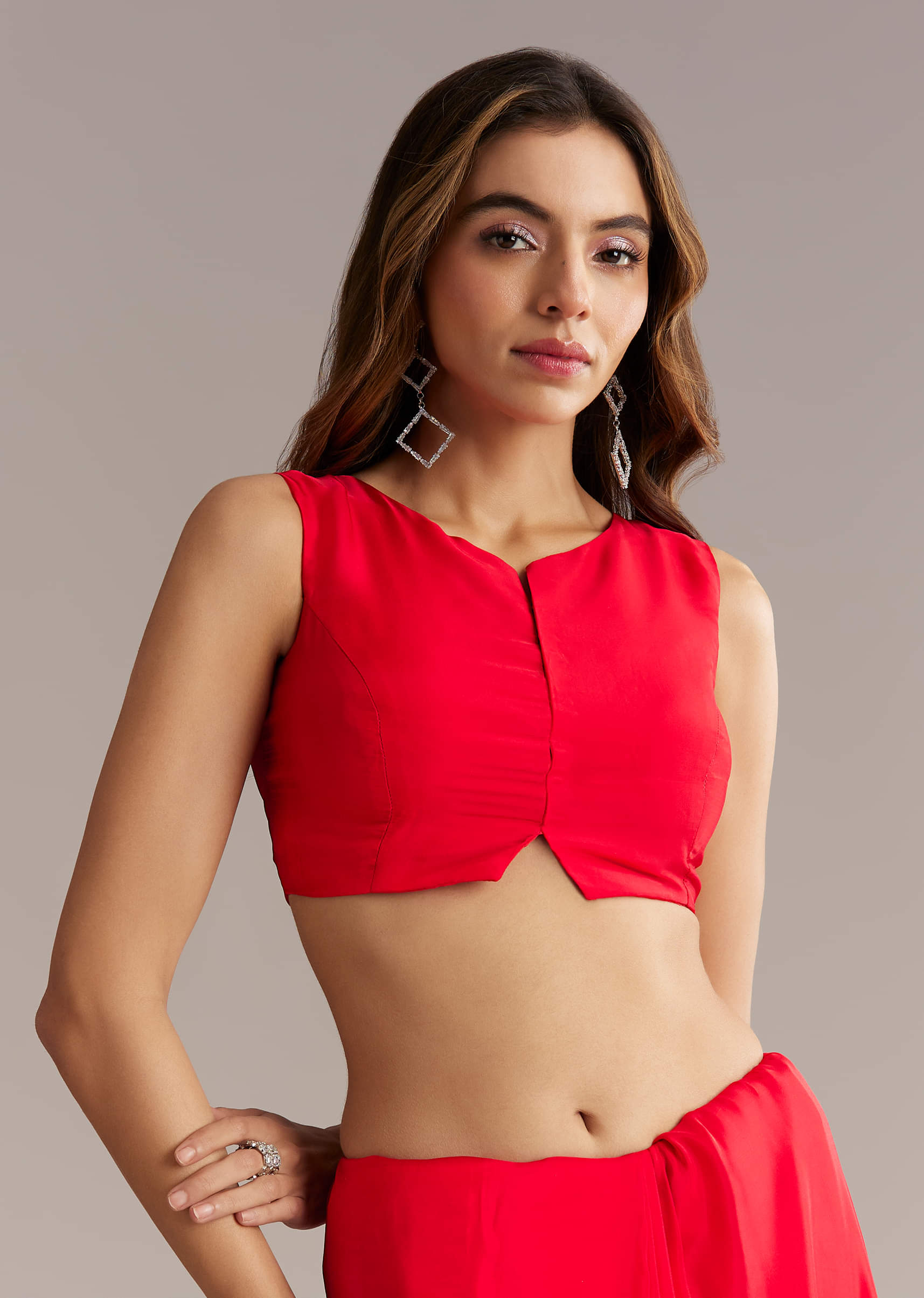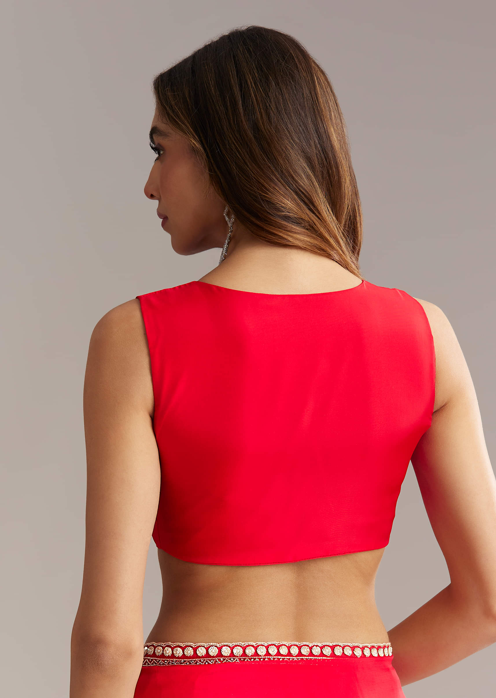 Bold and festive, this red silk saree brings instant brightness to the look. Small buttis with sequins, cutdana, and stone embroidery decorate the borders with detail. It is just right for pooja or Karwa Chauth when you want to glow with ease. Awarded as the Most Trusted Brand, we're delivering styles you love, just as promised.