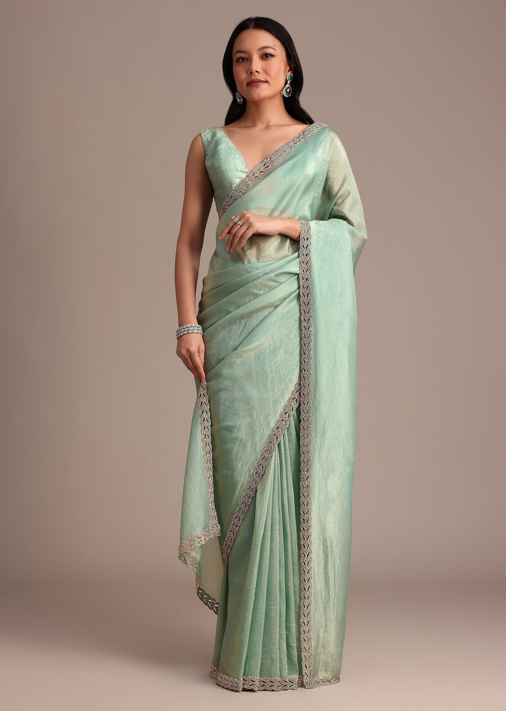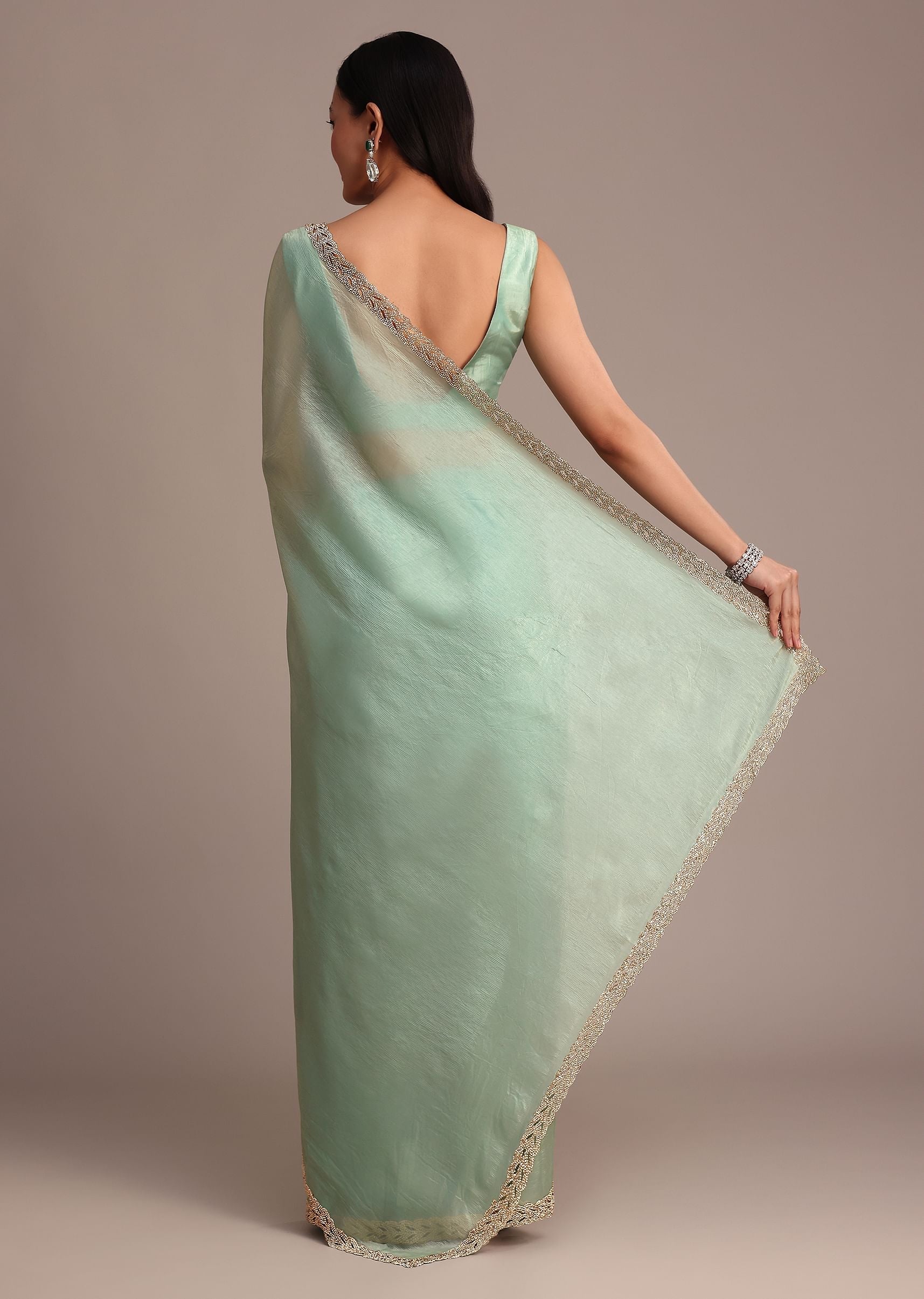 Sea Green Crushed Tissue Saree With Stone Embellished Border