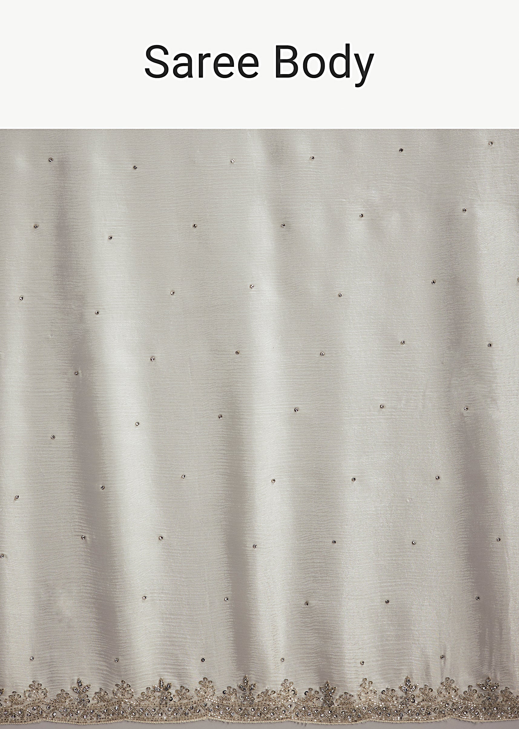 Minimal yet striking, this white chinon saree feels ethereal. Stones embellish the body while the borders shimmer with sequins and cutdana. It is a timeless pick for special gatherings when you want elegance to do the talking. Awarded as the Most Trusted Brand, we're delivering styles you love, just as promised.