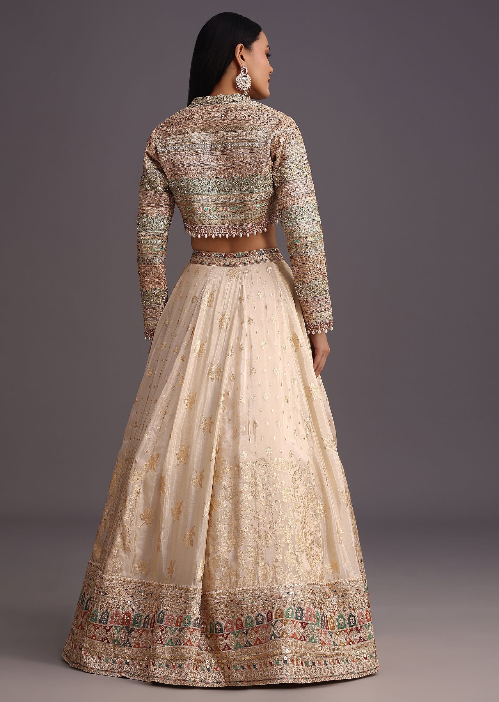 White Gotta Work Choli With Banarasi Weave Lehenga