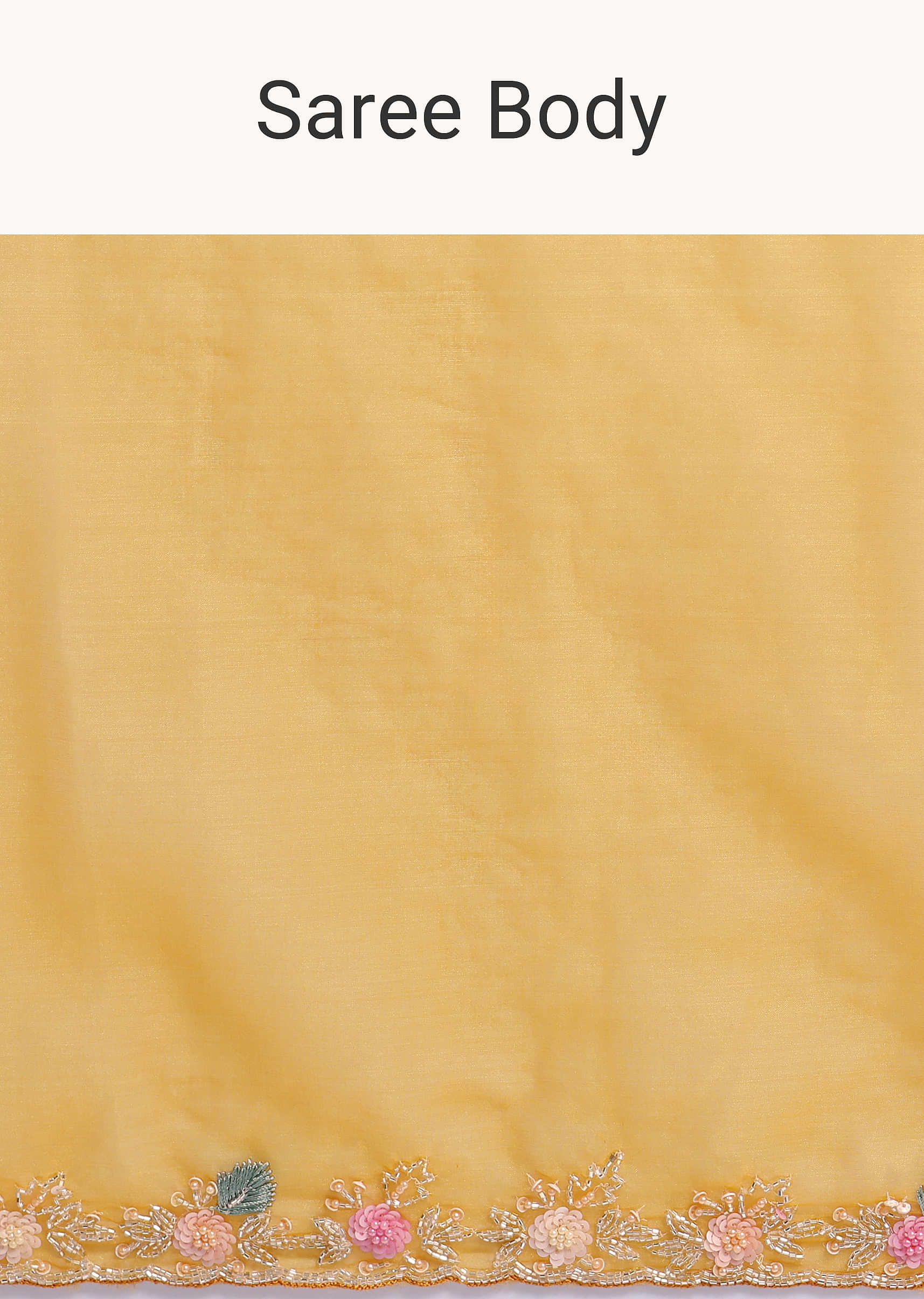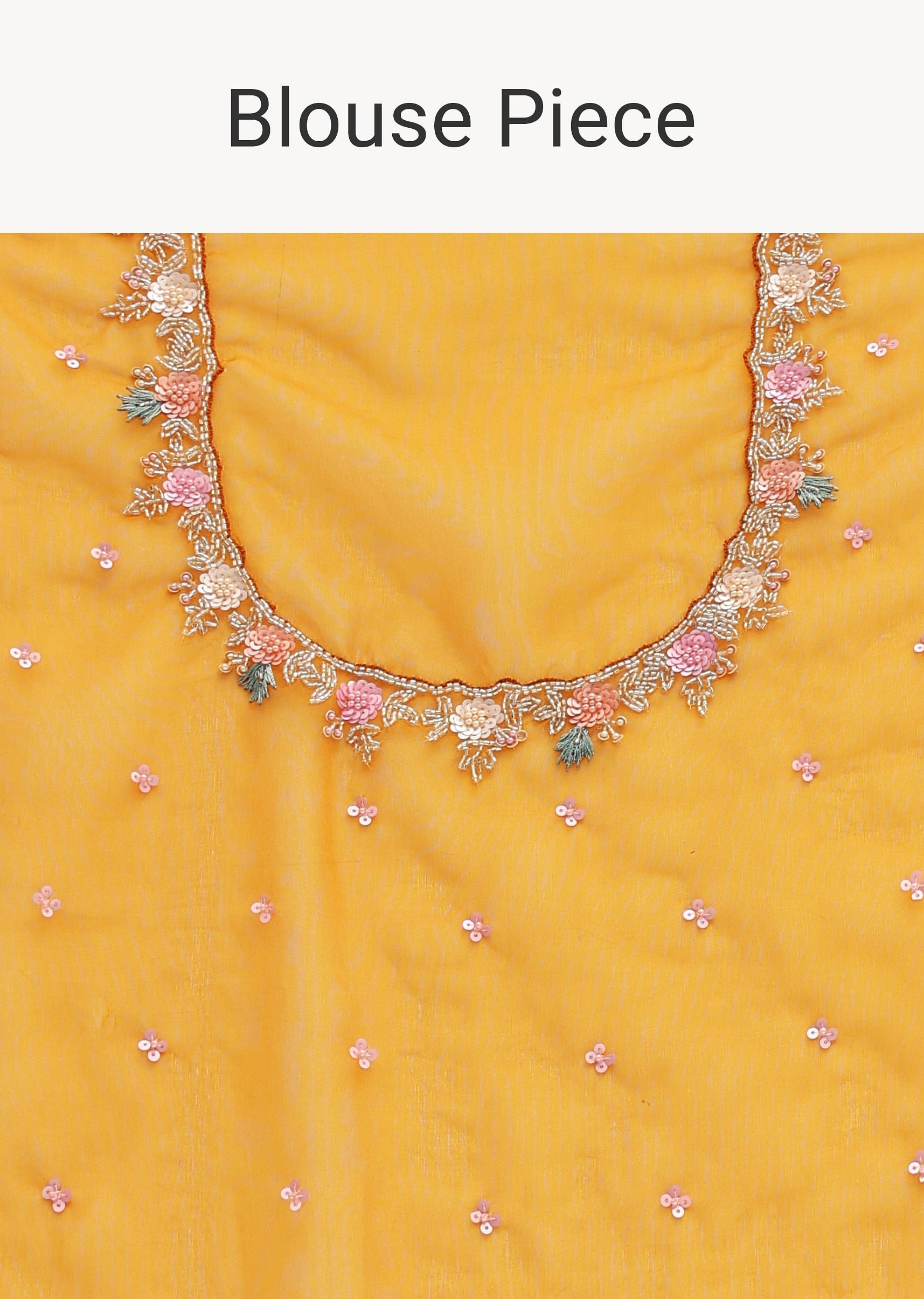 Yellow Organza Saree In 3D Sequins With Unstitched Blouse